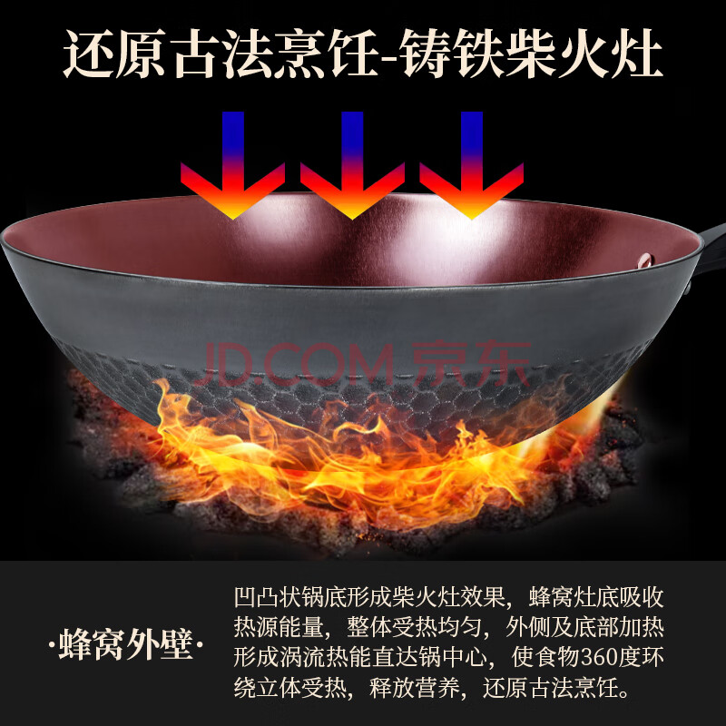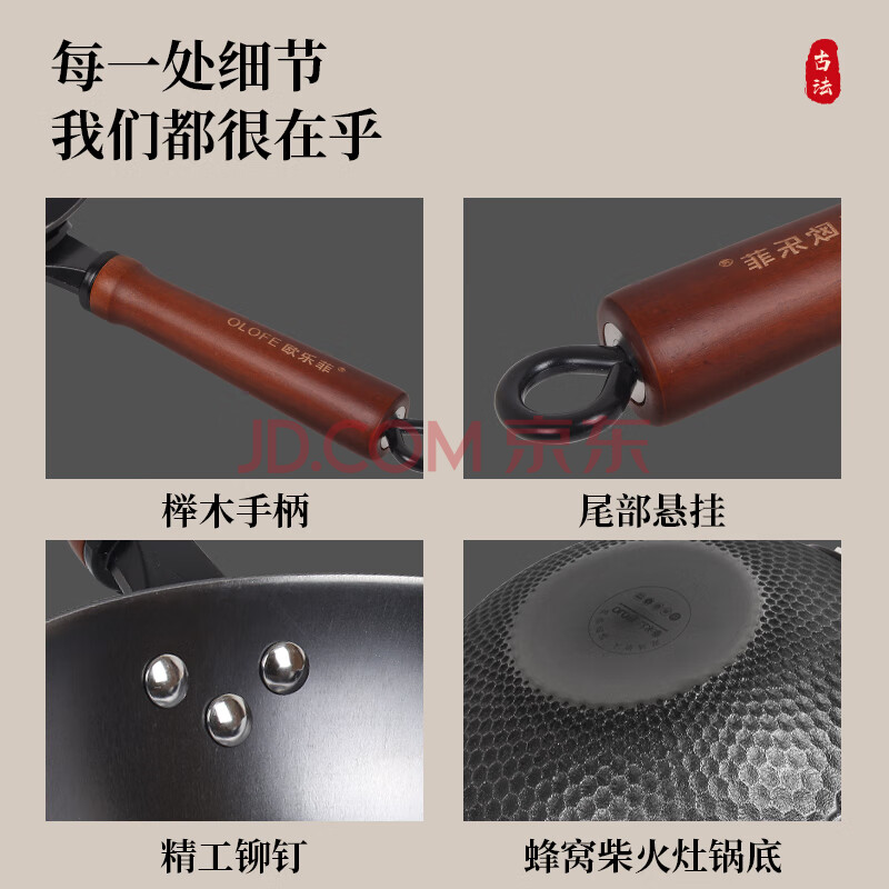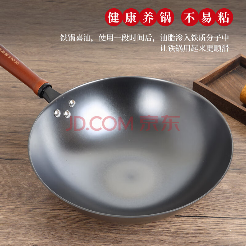 商品相册:欧乐菲(OLOFE)章铁匠炒锅老式平底炒菜家用燃气灶通用铸铁锅具大炒勺柴火灶32cm第