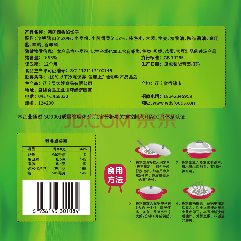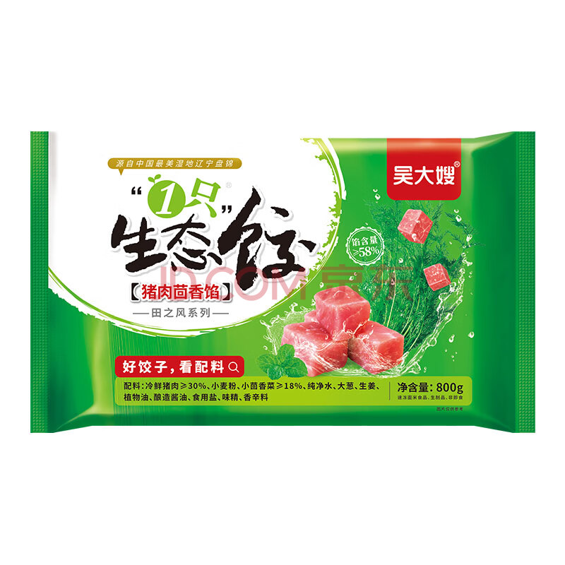 商品相册:吴大嫂 东北水饺 猪肉茴香 800g 40只 蒸饺煎饺锅贴 冷冻饺子第