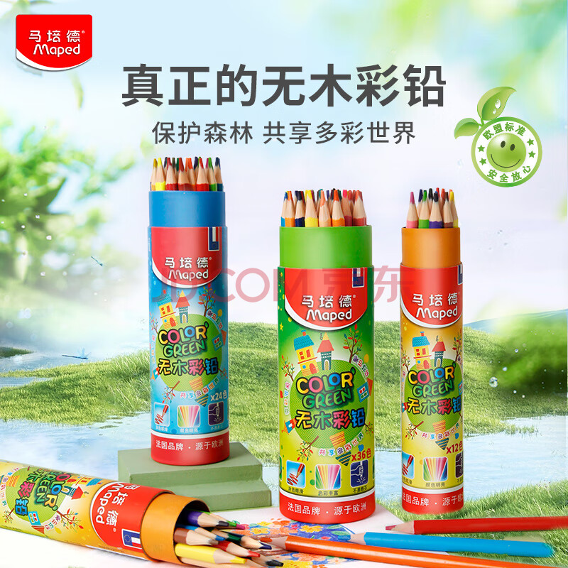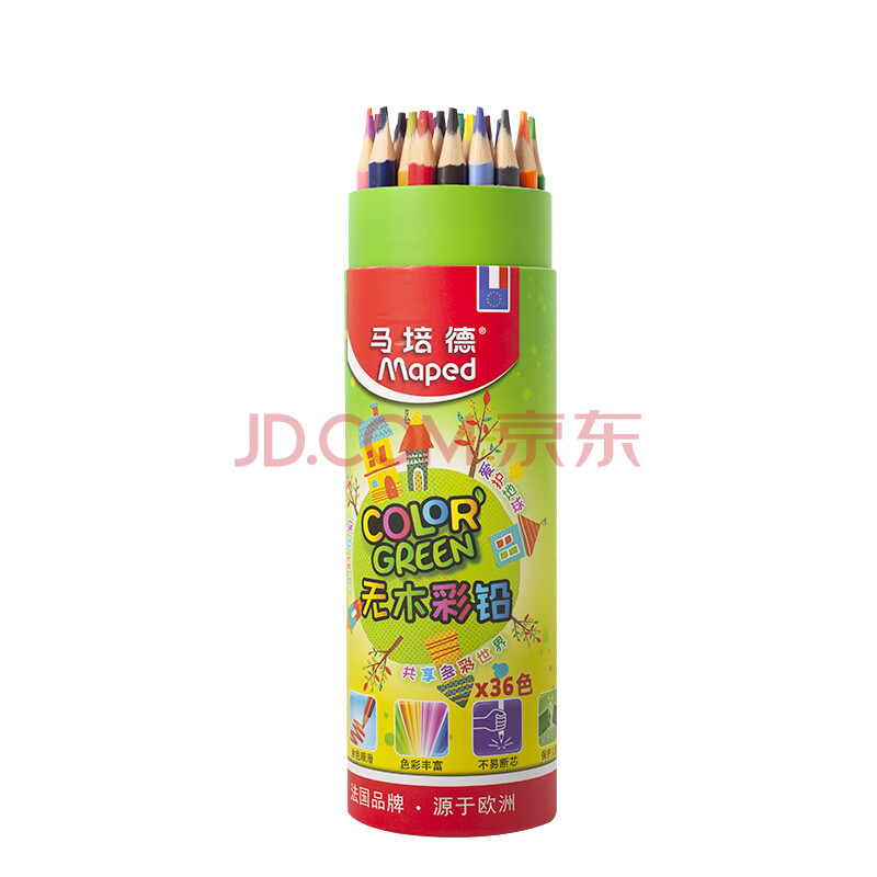 商品相册:马培德(Maped)无木油性彩铅 幼儿学生环保绘彩蜡笔 初学美术彩绘涂鸦画笔 节日儿童礼物 862214CH【36色/桶】第
