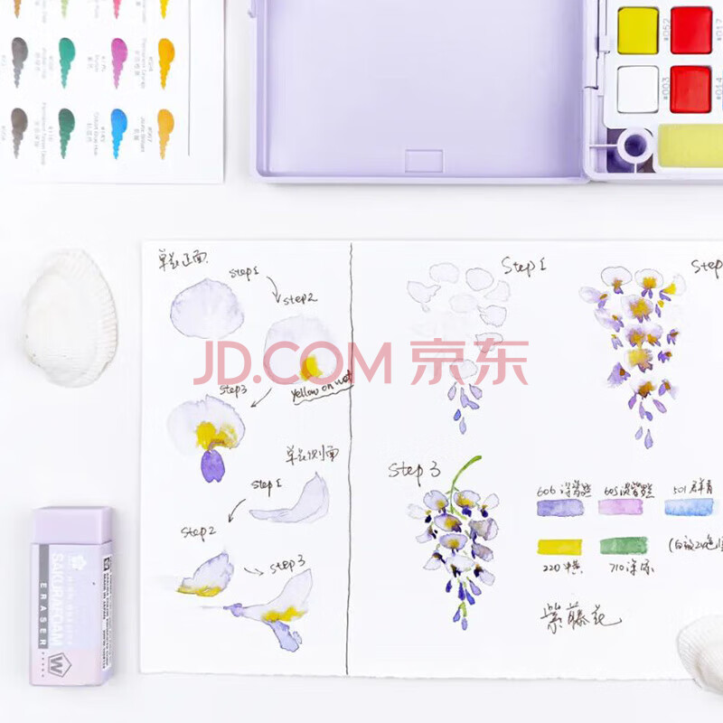 商品相册:樱花(SAKURA)固体水彩颜料24色马卡龙套装(薰衣草色外壳)便携透明水彩写生学生绘画用品美术写生第