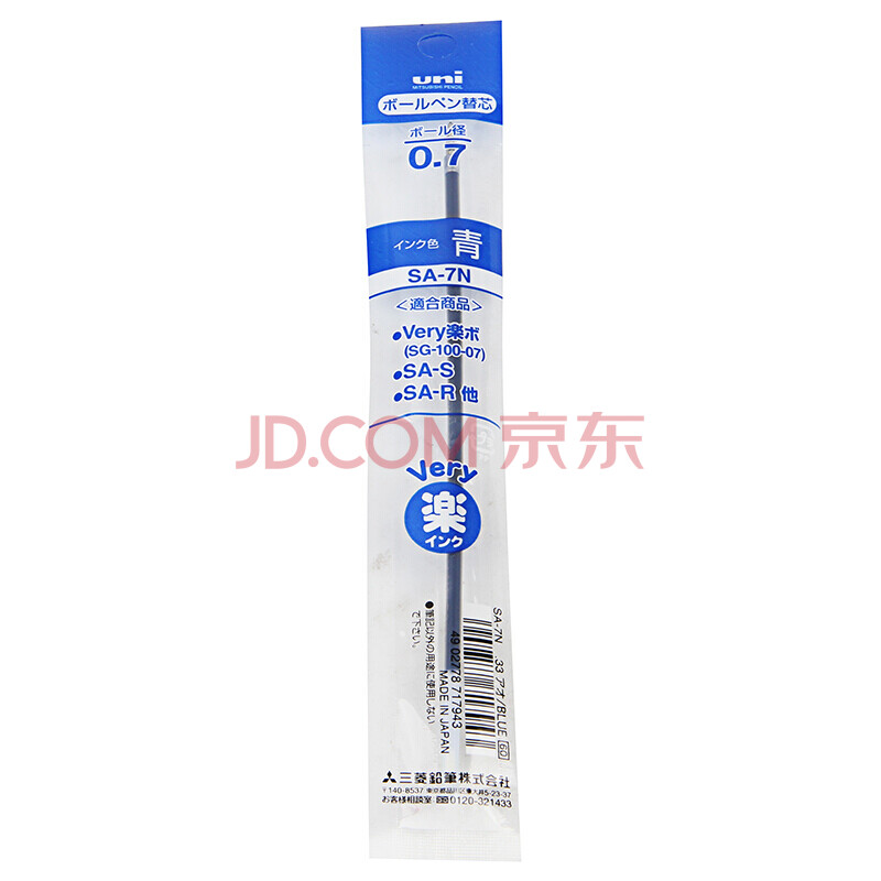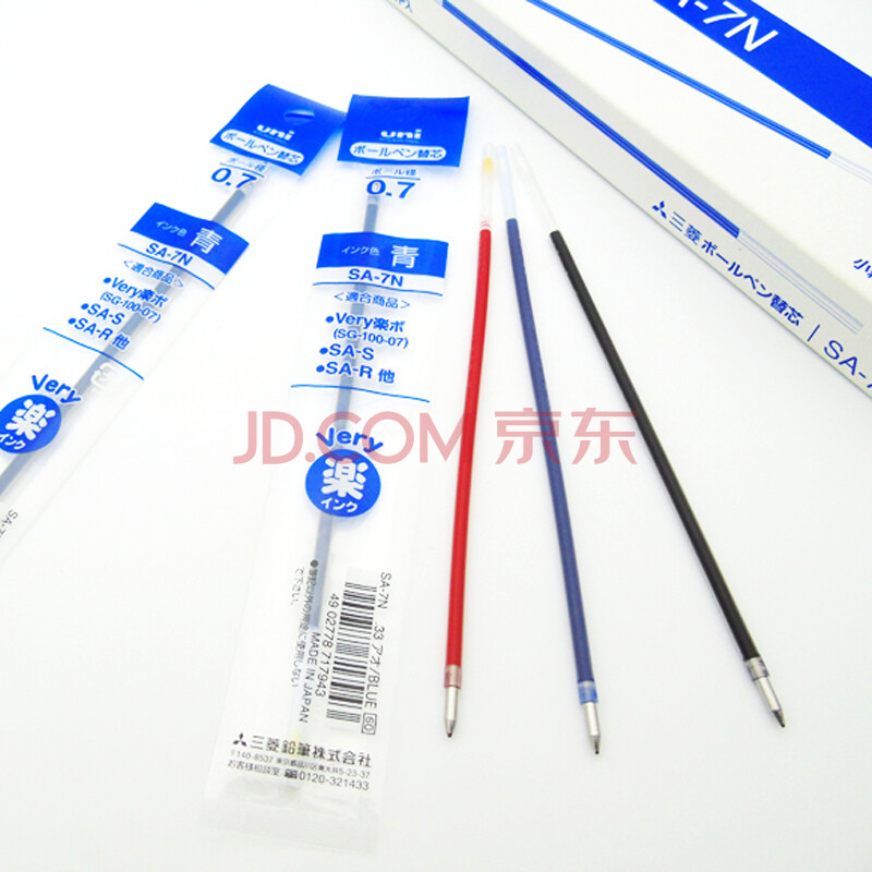 商品相册:uni三菱 圆珠笔芯SA-7N 圆珠笔替芯(适用于SA-S圆珠笔)0.7mm蓝色 10支/盒第