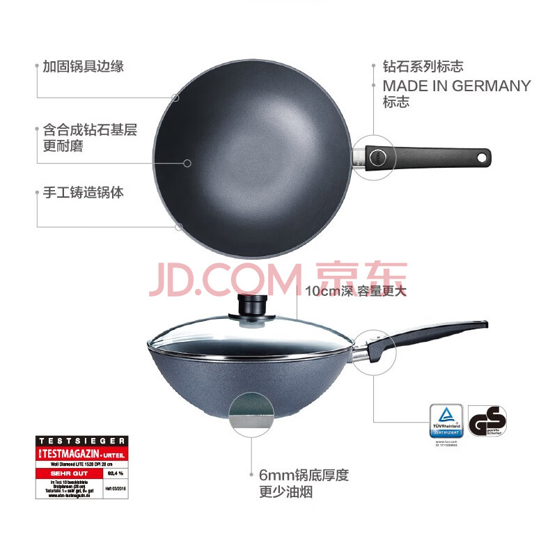 商品相册:WOLL德国制造不粘炒锅钻石系列30cm中式炒锅少油烟家用炒菜锅进口锅具第