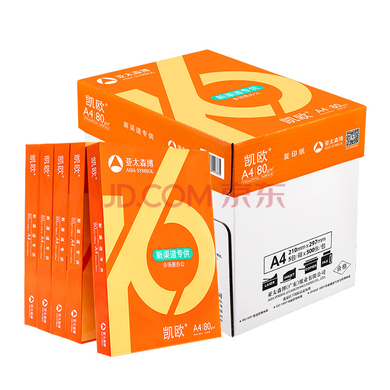 商品相册:亚太森博(Asia Symbol)凯欧 80g A4复印纸 500张/包 5包/箱(2500张)厚实细腻 双面打印复印纸第