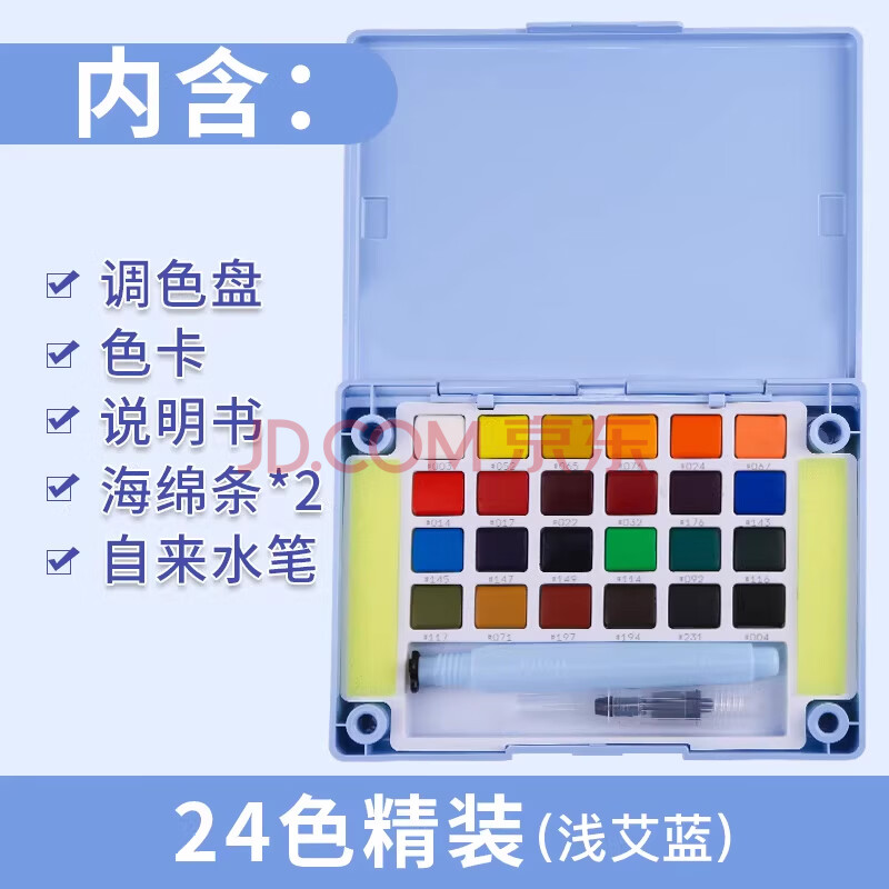 商品相册:樱花(SAKURA)固体水彩颜料24色马卡龙套装(浅艾蓝色外壳)荷兰泰伦斯便携透明水彩 写生学生绘画用品美术写生第