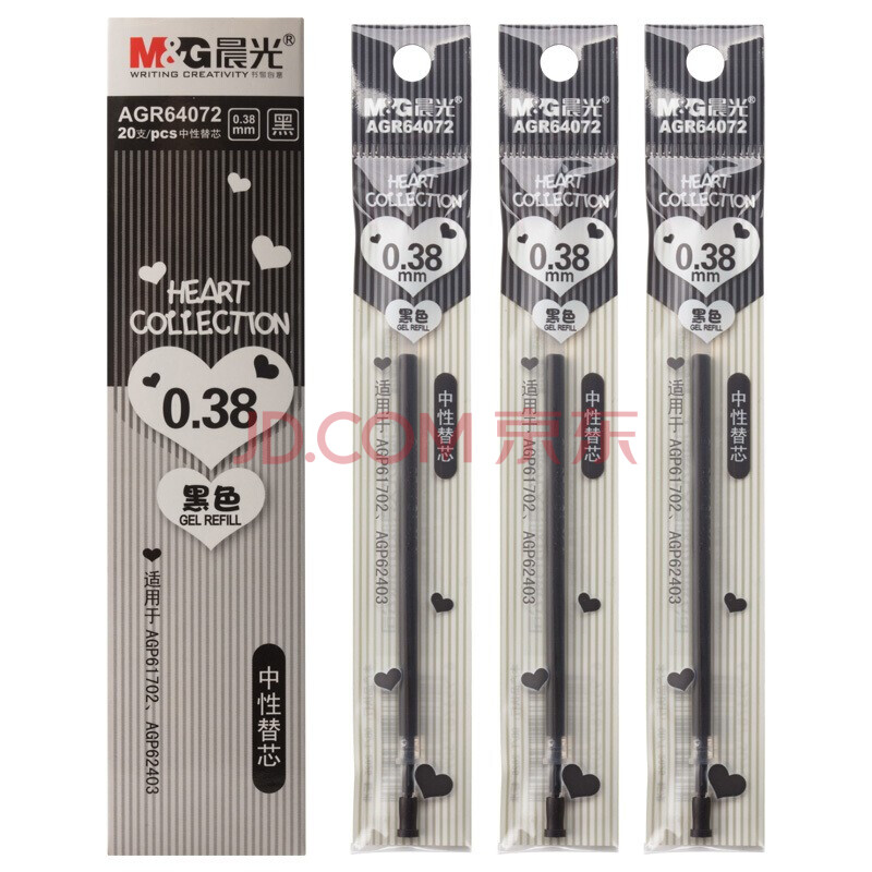 商品相册:晨光(M&G)中性笔芯AGR64072文具黑色中性笔替芯 全针管签字笔芯 简约水笔替换芯 0.38mm 20装第