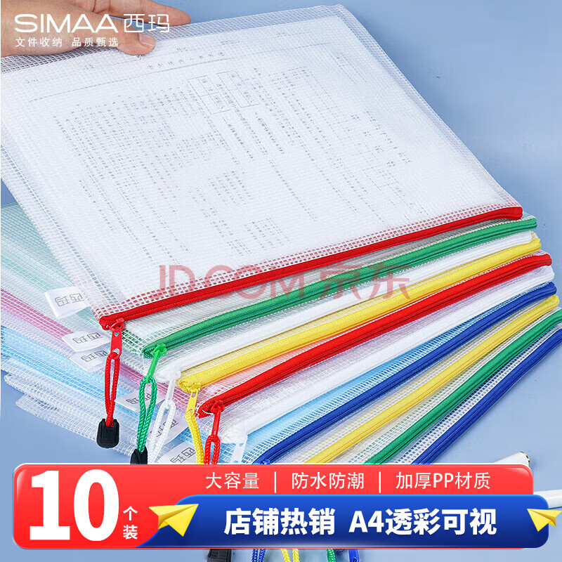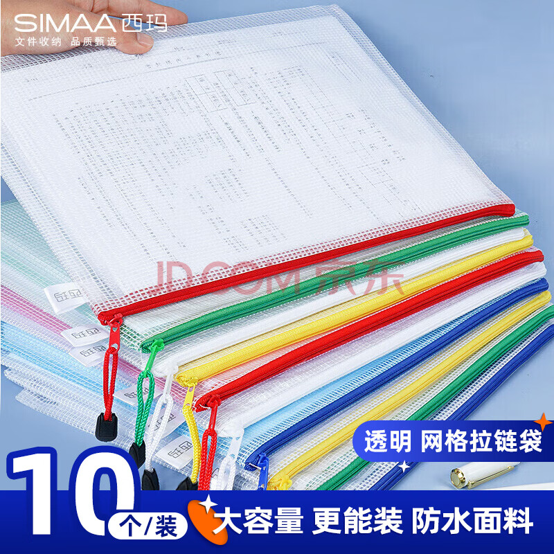 商品相册:西玛(SIMAA)【全网低价】10只A4防水网格学科分类袋文件袋拉链袋文具考试收纳专用袋试卷袋补习袋 6756第