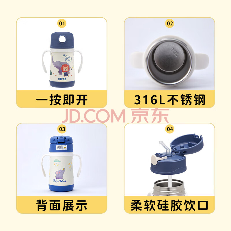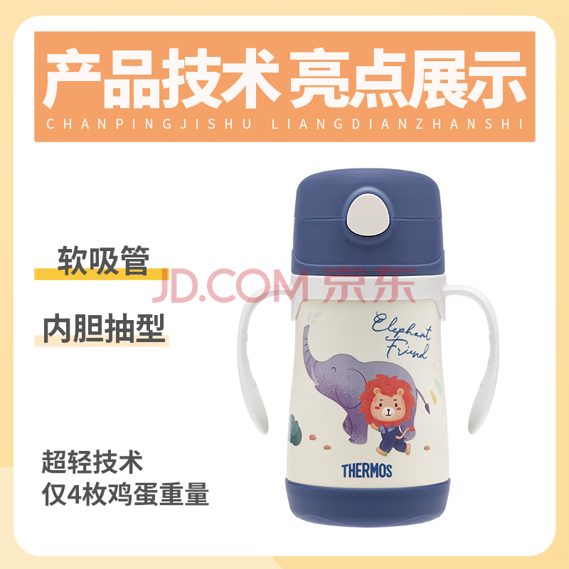 商品相册:膳魔师(THERMOS)儿童吸管保温杯316L不锈钢把手学生杯幼儿园婴儿水杯上学TCKC第