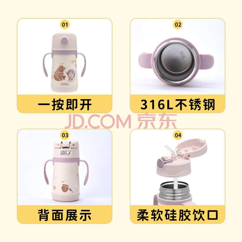 商品相册:膳魔师(THERMOS)儿童吸管保温杯316L不锈钢把手学生杯幼儿园婴儿水杯上学TCKC第