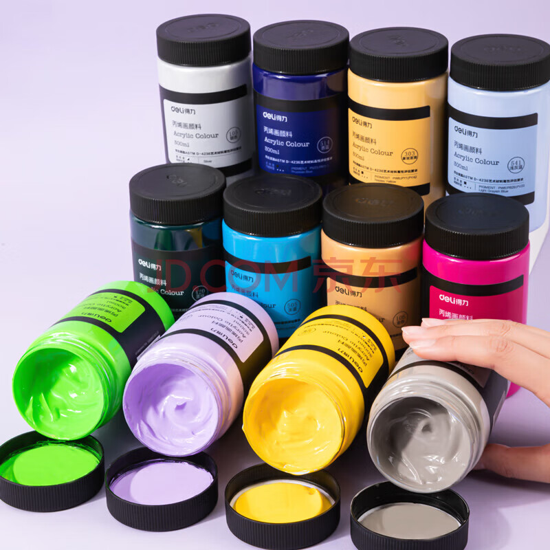 商品相册:得力(deli)丙烯颜料300ml大容量灰色墙绘手绘DIY画画丙烯画大桶装大瓶美术绘画73875美育工具第