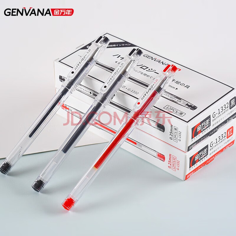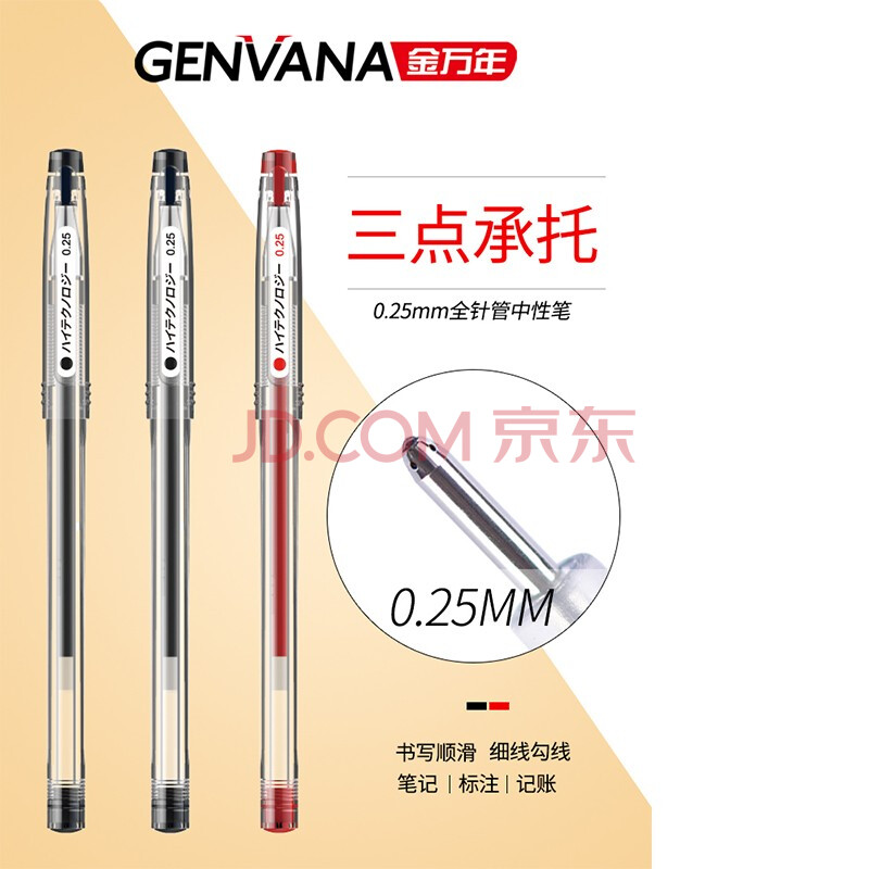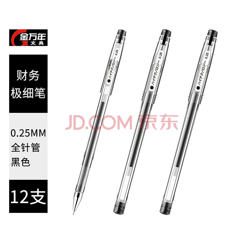 商品相册:金万年【12支财务笔】0.25mm黑色中性笔全针管财务极细笔水性笔会计水笔细头记账笔G-1332-001第