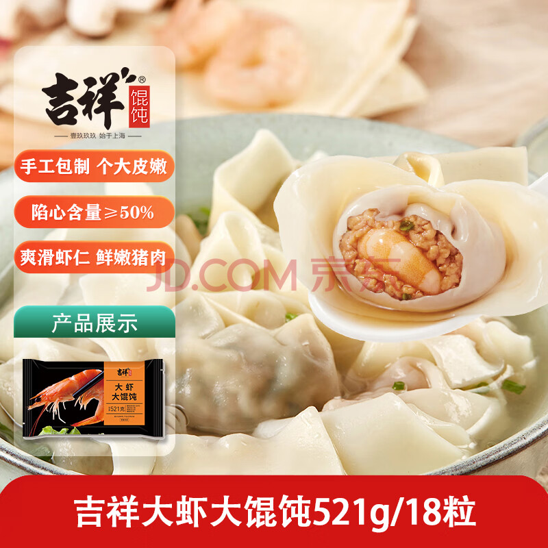 商品相册:吉祥馄饨大虾大馄饨521g/18只生鲜水饺云吞饺子混沌早餐半成品第