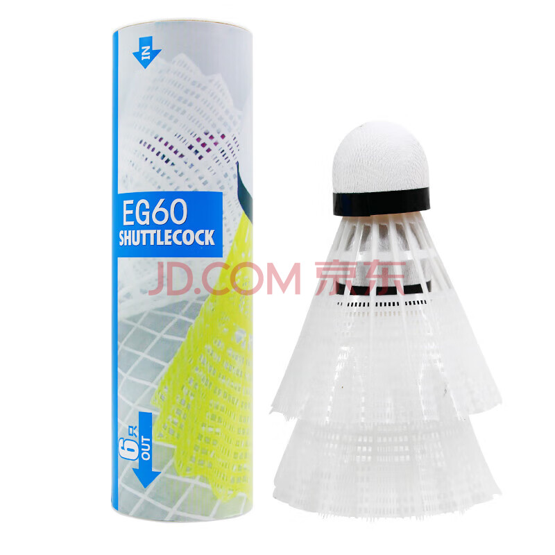 商品相册:红双喜DHS耐打训练尼龙羽毛球塑料胶练习羽球6只装白色EG60第