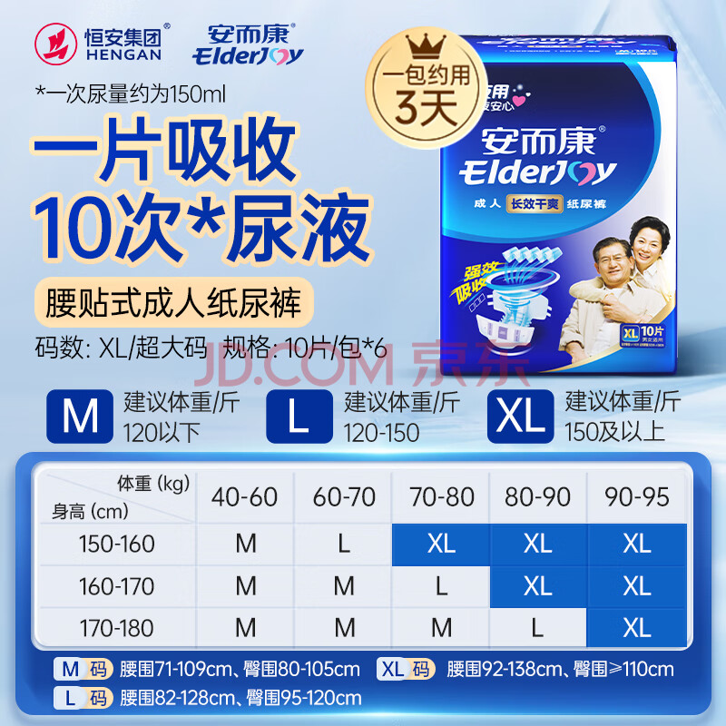 商品相册:安而康(Elderjoy)长效干爽成人纸尿裤XL60片臀围>110cm成人尿不湿老人夜间安睡第1张/共7