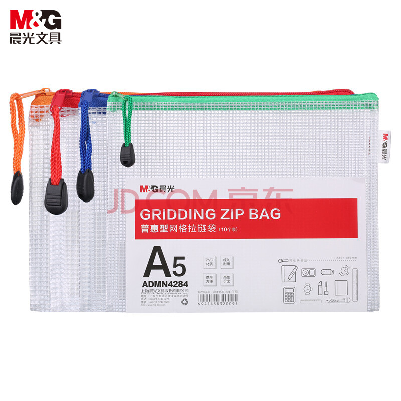 商品相册:晨光(M&G)文具A5/10个装网格拉链袋 办公文件袋资料袋 学生考试试卷收纳文件整理收纳袋 颜色随机ADMN4284第