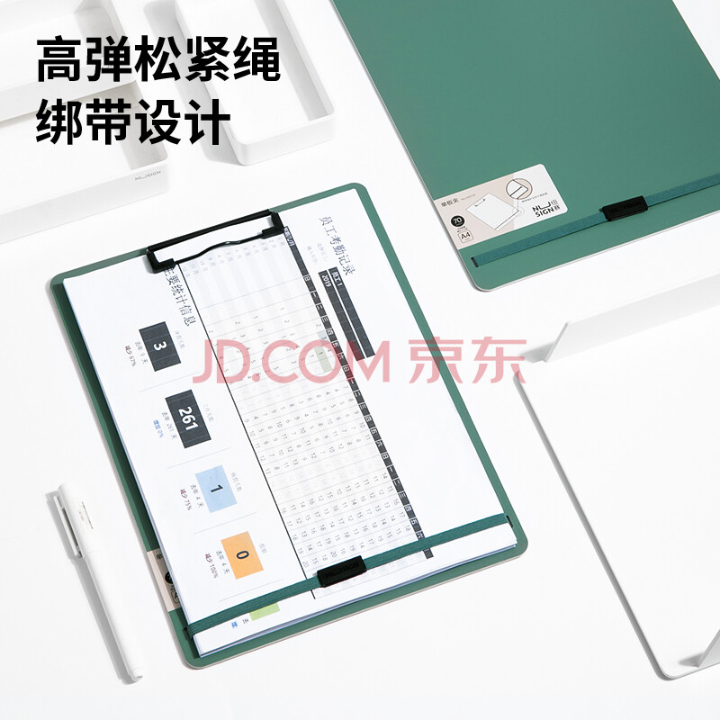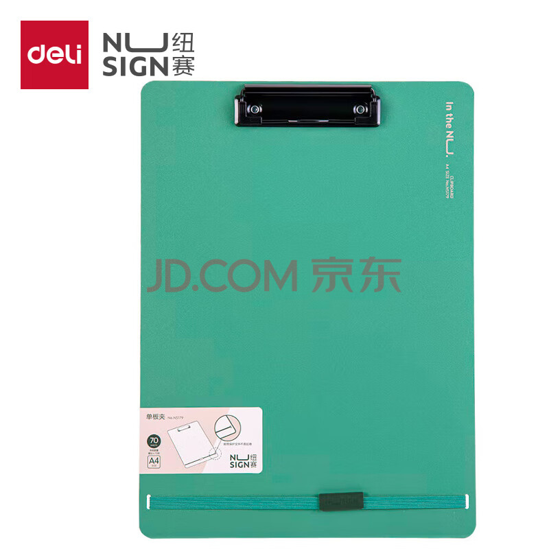 商品相册:得力(deli)A4文件夹书写板夹金属强力夹 学生多功能写字垫板简约硬质会议夹绑带加固 办公用品 飞泉绿NS179第