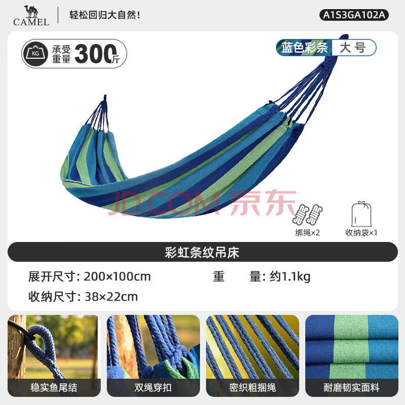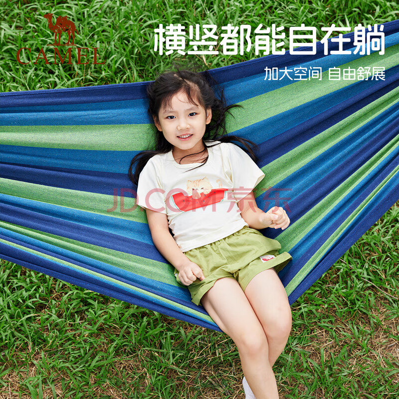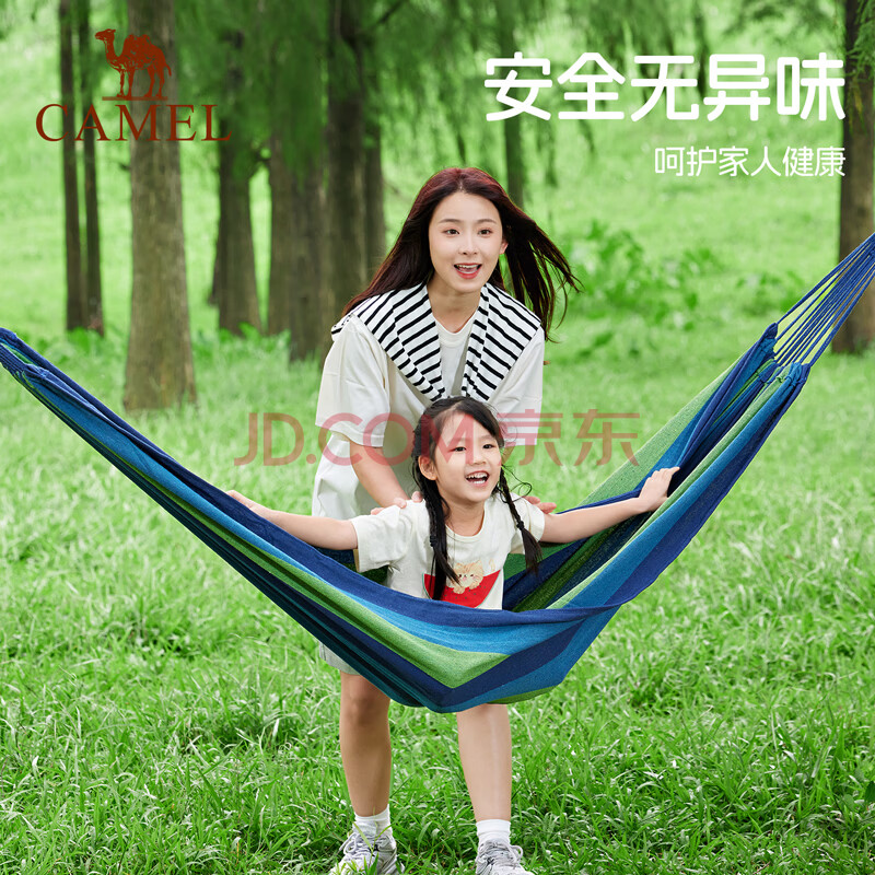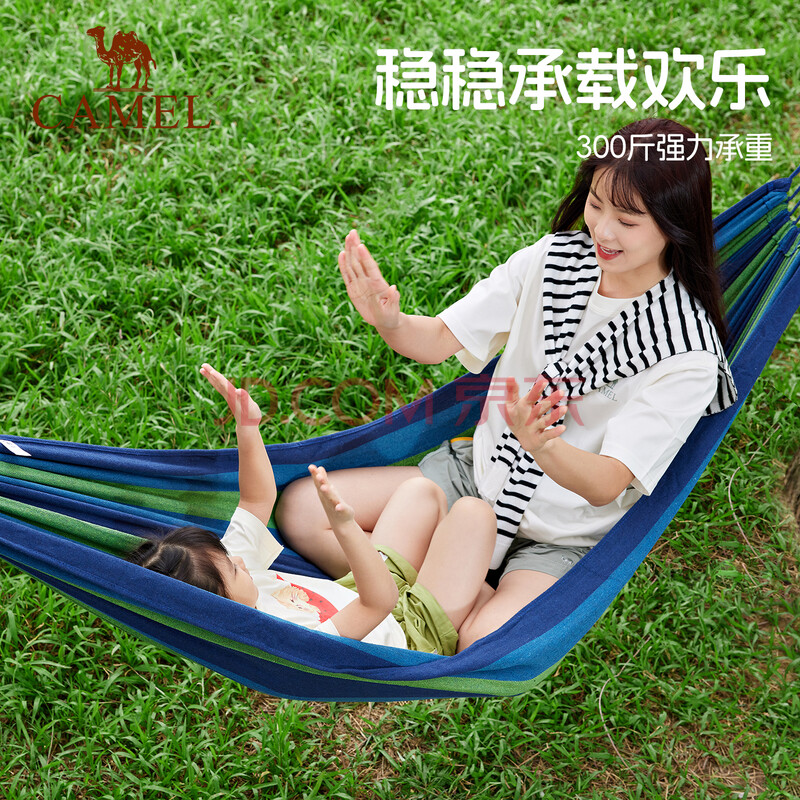 商品相册:骆驼(CAMEL)户外吊床 成人防侧翻吊床秋千 A1S3GA102 蓝色彩条 (200*100)第