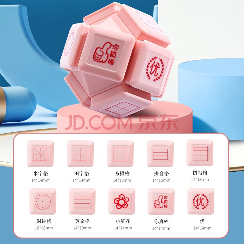 商品相册:法拉蒙(faramon)十面魔方印章小学生升级款多功能教学纠错订正儿童印章田字格拼音钟表印章 粉色-简约装第