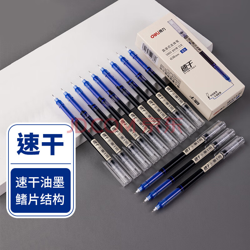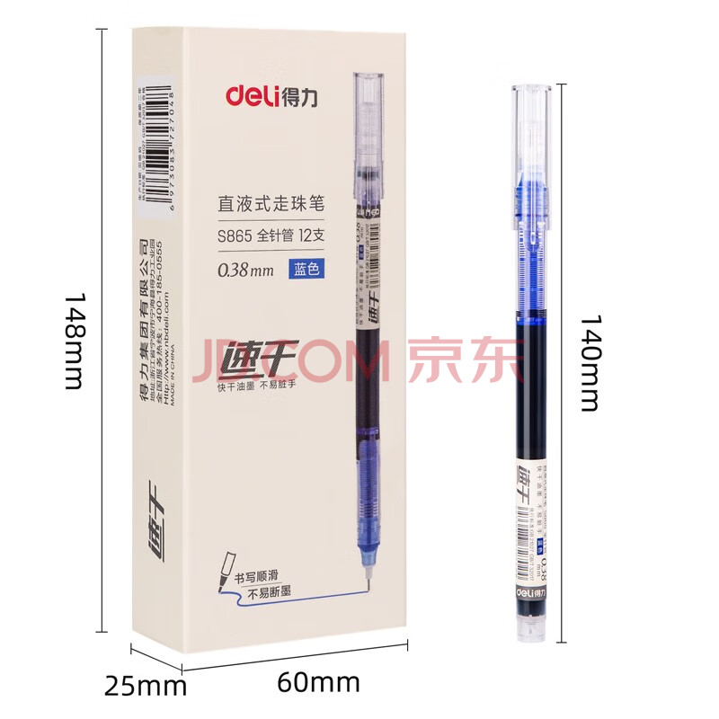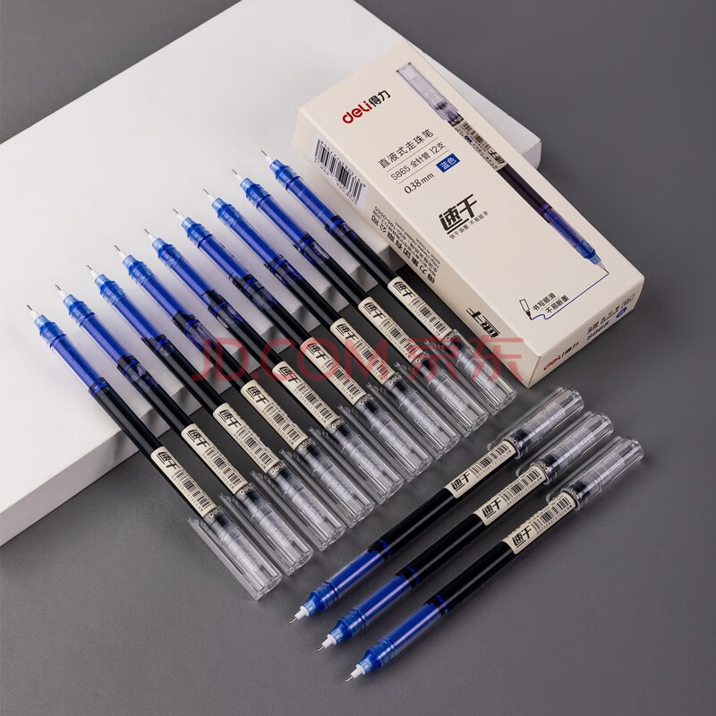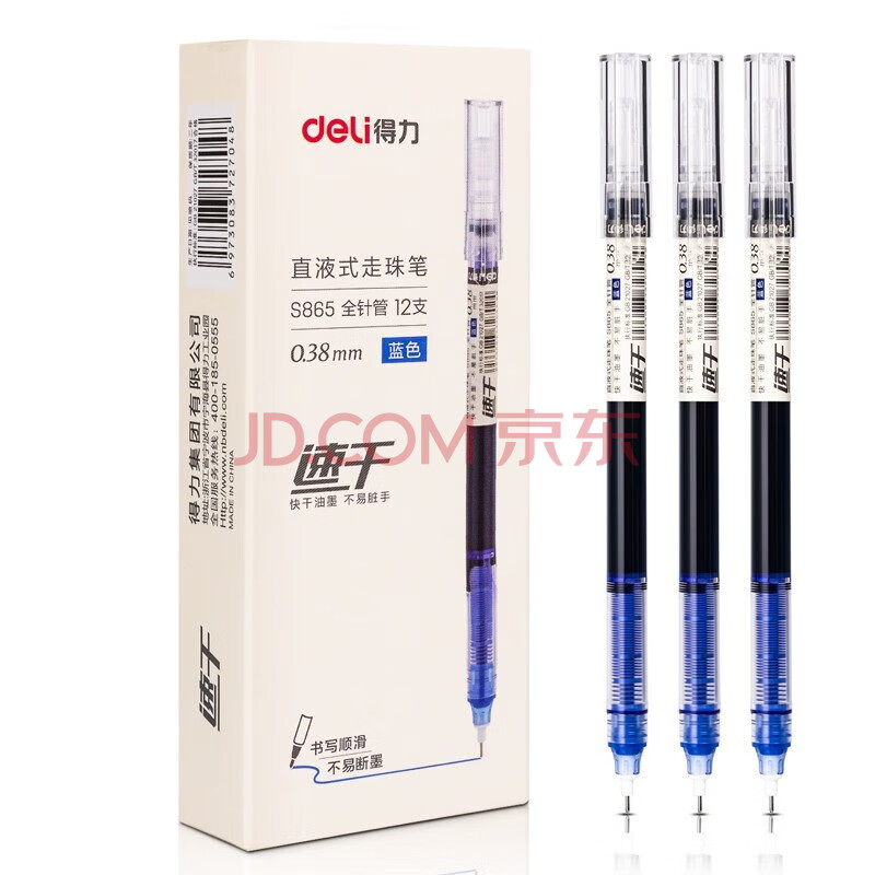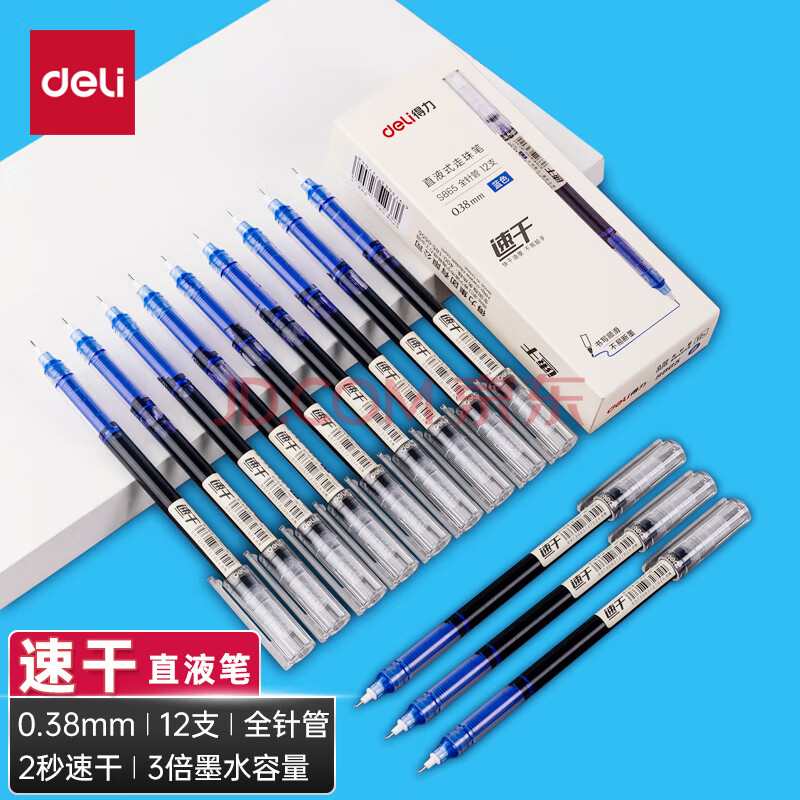 商品相册:得力(deli)(deli)速干直液笔 0.38mm全针管学生中性笔水笔签字笔 水笔走珠笔 蓝色 12支/盒S865第