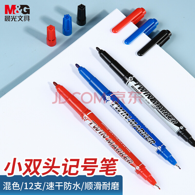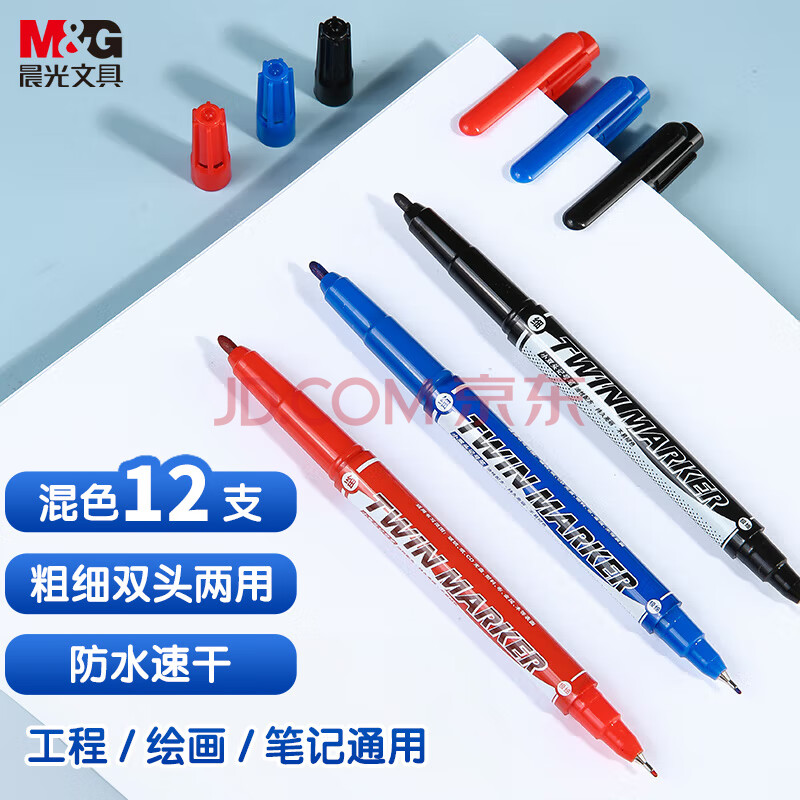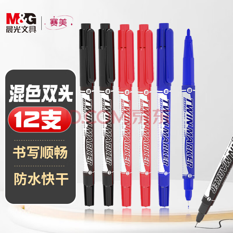 商品相册:晨光文具 多色粗细双头记号笔 防水马克笔油性笔 儿童学生勾线笔 办公用品(8黑2蓝2红)12支XPMV7404第