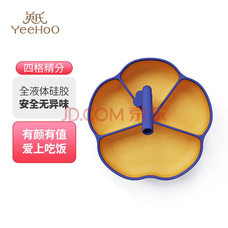 商品相册:英氏(YEEHOO)儿童分格餐盘宝宝硅胶餐具婴幼儿摔防烫吸盘吃饭辅食碗 孔雀橘第