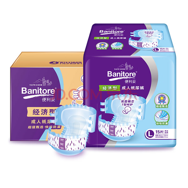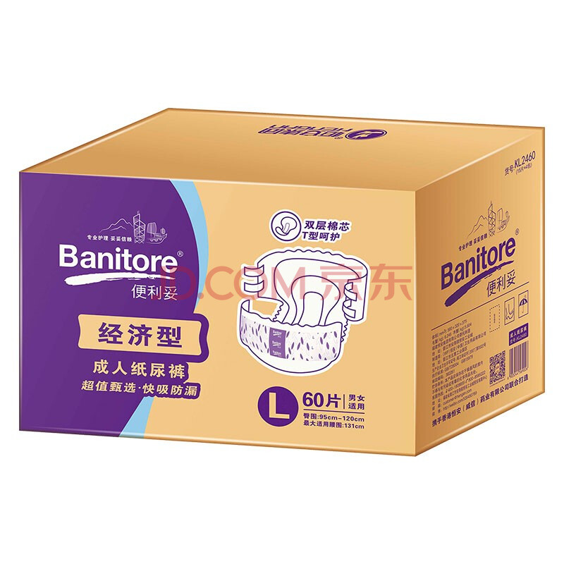 商品相册:便利妥(Banitore)经济型成人纸尿裤 L码60片(臀围95-120cm) 防漏尿不湿透气恒安第