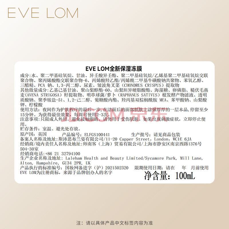 商品相册:EVE LOM伊芙珑全新保湿冻膜100ml 海藻精华补水玻尿酸 生日礼物送女生第