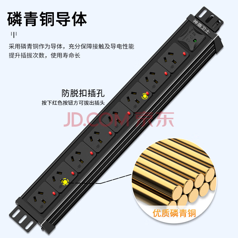 商品相册:神盾卫士(SDWS)PDU机柜插座8位16A大功率插线板新国标防雷防脱插排可定制SC38656F第