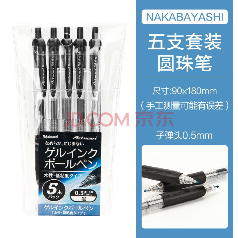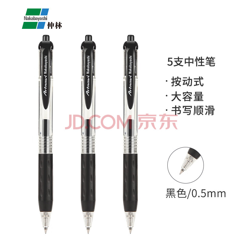 商品相册:Nakabayashi仲林按动式中性笔0.5mm子弹头圆珠笔黑色5支装LBPS-01D-5P 中性笔【五支】第