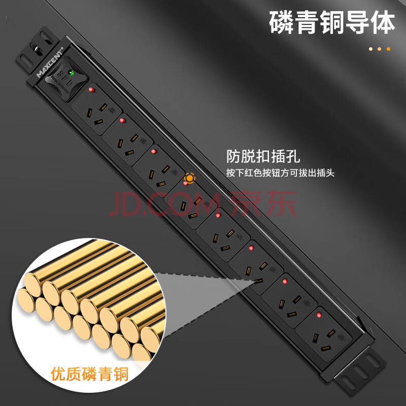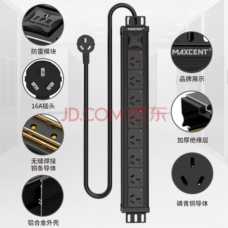 商品相册:麦森特(MAXCENT)PDU机柜插座8位16A大功率插线板新国标防雷防脱插排可定制MC38656F第