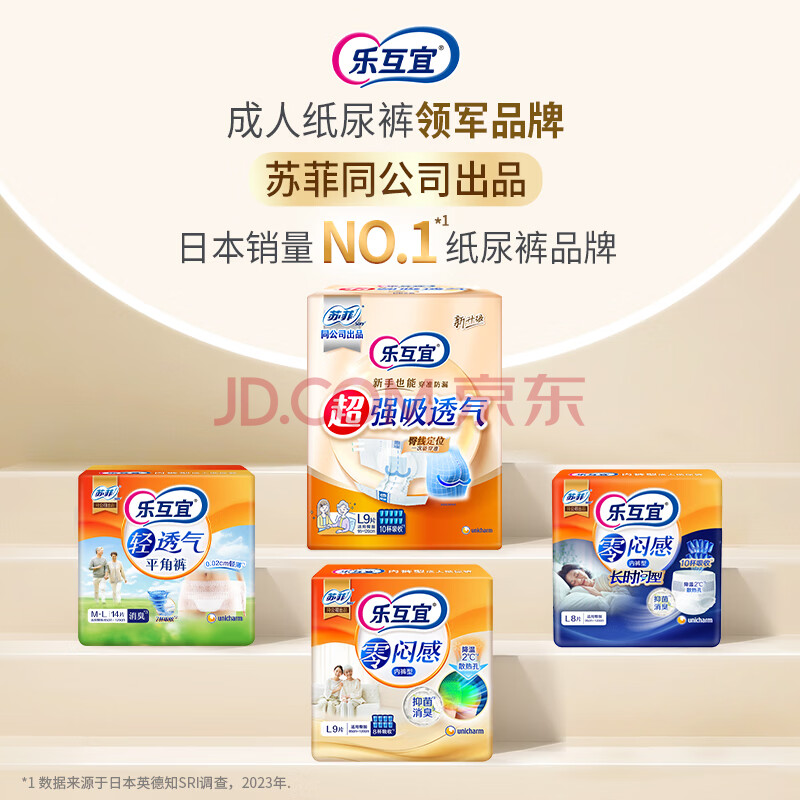 商品相册:乐互宜强吸透气成人纸尿裤M10片(臀围80-105cm)老年人防漏腰贴型尿不湿第