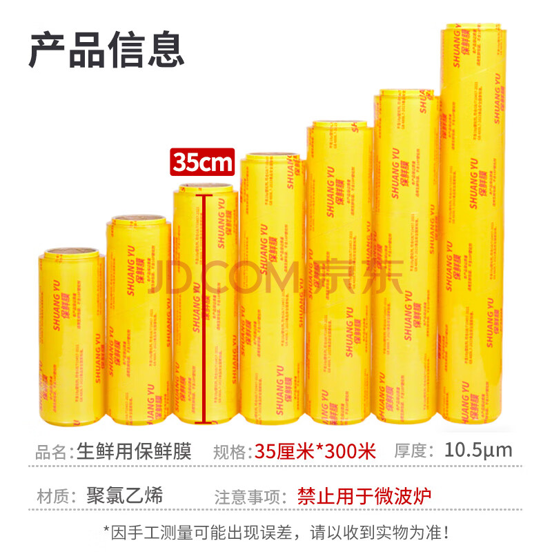 商品相册:SHUANG YU保鲜膜大卷【PVC材质 300m*35cm】商用生鲜蔬果超市厨房食品膜第