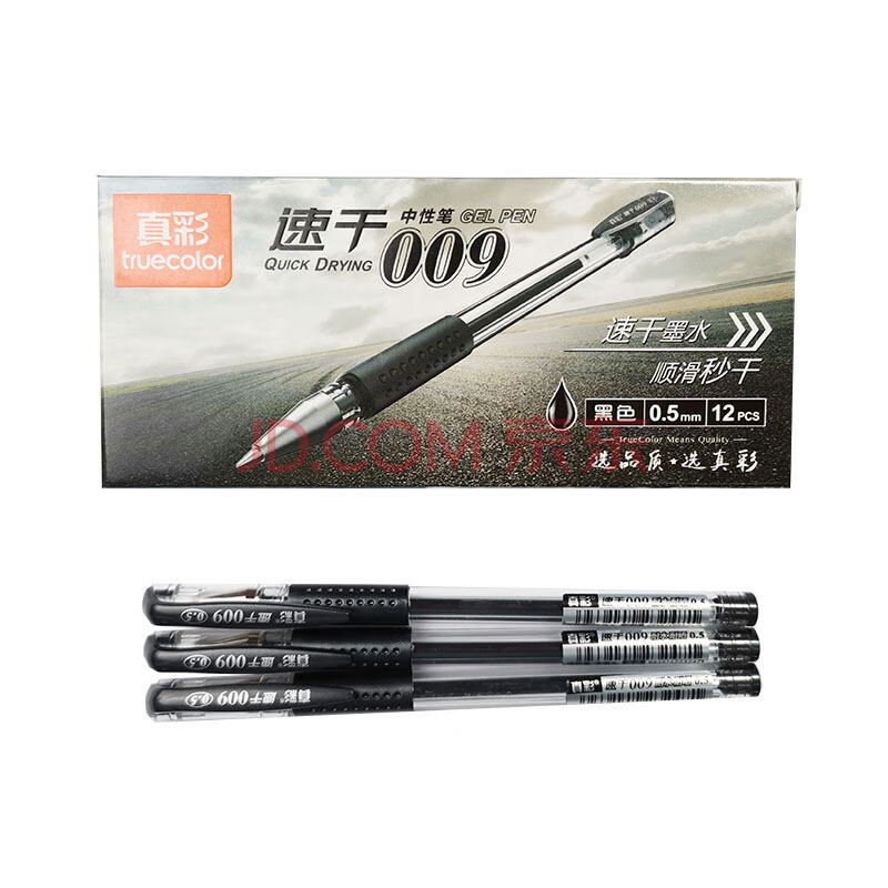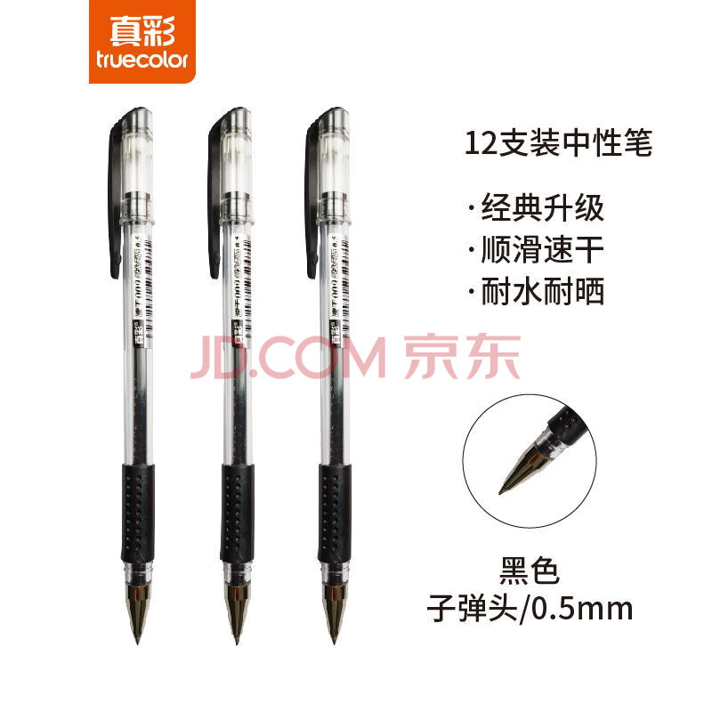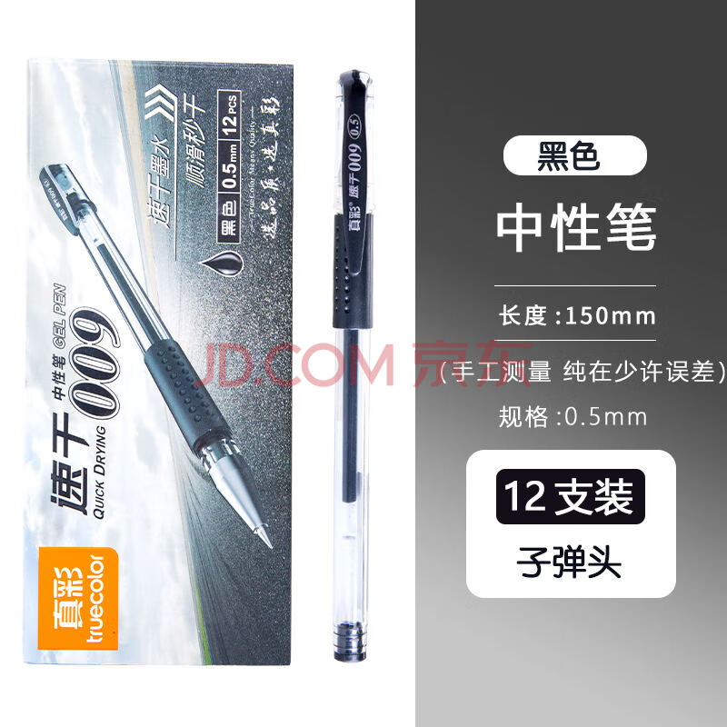 商品相册:真彩(TRUECOLOR)速干009黑色中性笔0.5mm经典办公子弹头拔帽商务会议记录水笔学生考试文具用品热门商品 12支/盒第