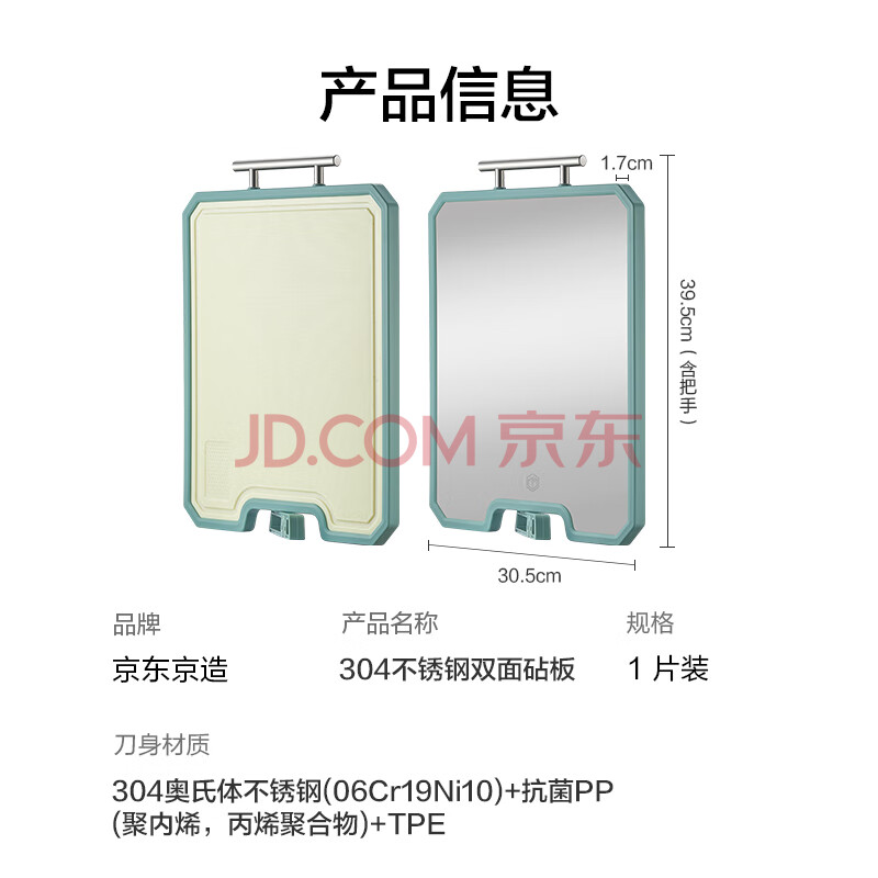 商品相册:京东京造 菜板 304不锈钢砧案PP板切菜家用【抗菌防霉】39.5*30*1.7cm第