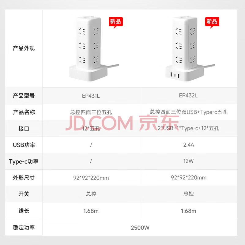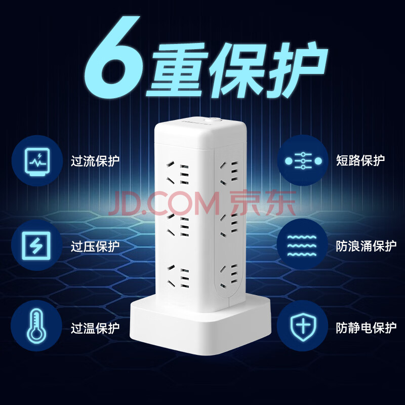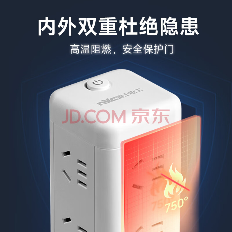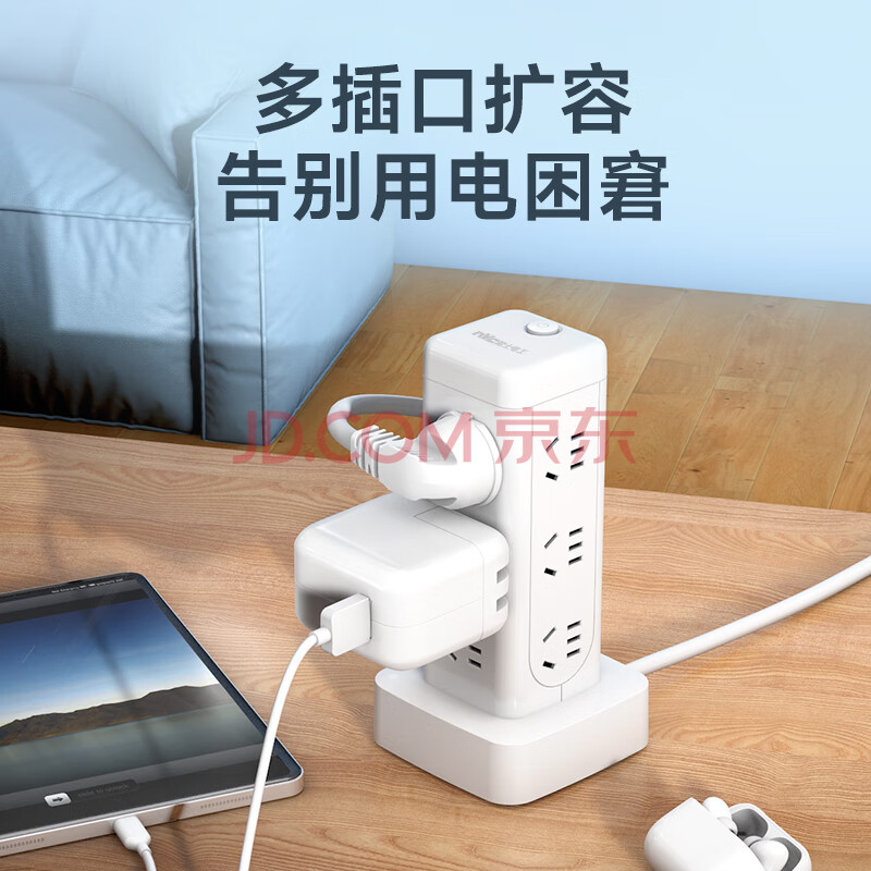商品相册:NVC雷士电工 立式插座 插线板排插插排宿舍用 多功能多孔 塔式桌面充电站拖线板 EP431L第