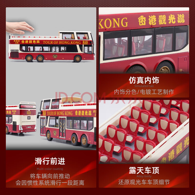 商品相册:驰誉玩具 观光香港双层大巴士公交车仿真合金车模汽车模型儿童礼物第