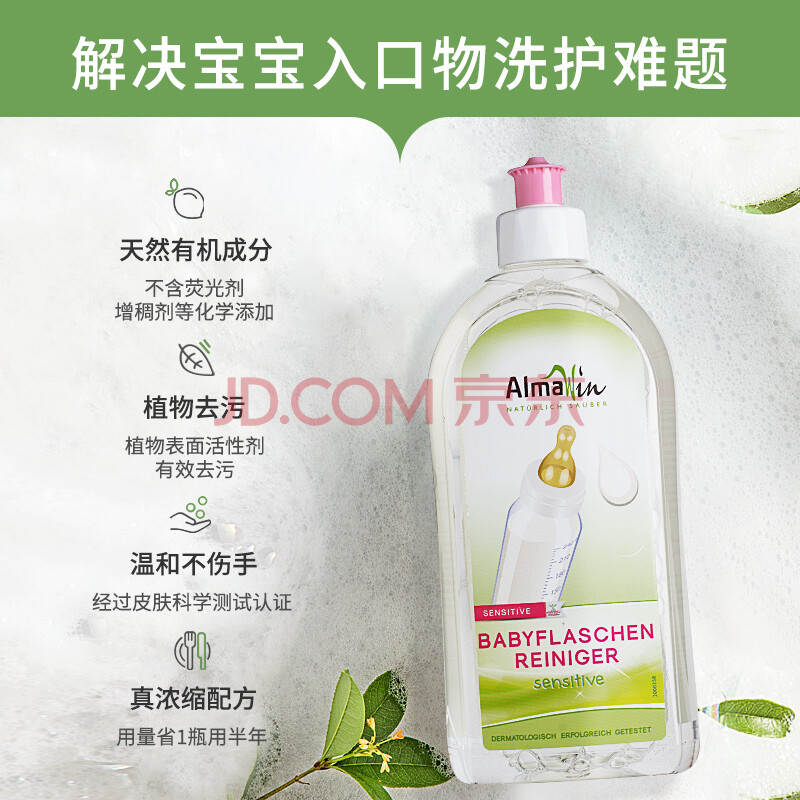 商品相册:almawin德国进口有机奶瓶清洗剂洗奶瓶婴儿奶嘴宝宝餐具浓缩清洁剂500ml第1张/共8