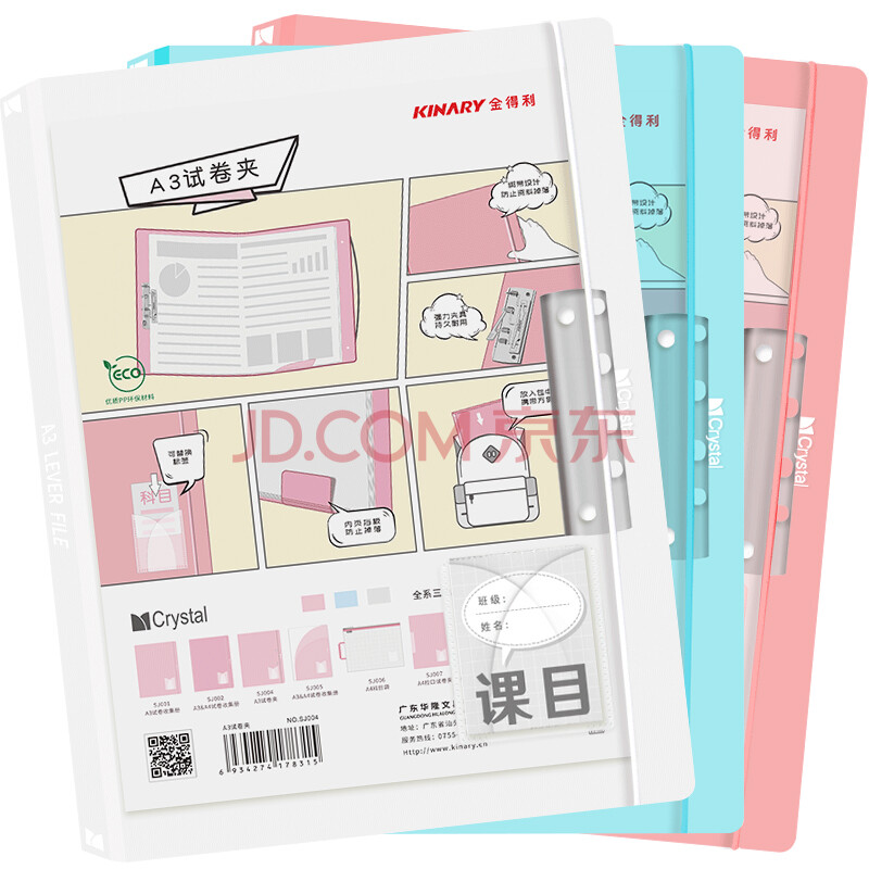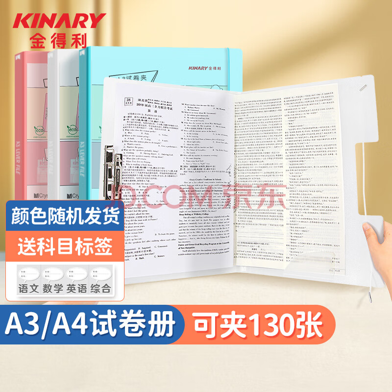 商品相册:金得利A3试卷整理夹绑带文件夹资料夹科目标签可替DIY初高中学生用卷子收纳神器粉色蓝色米白色随机发SJ004第