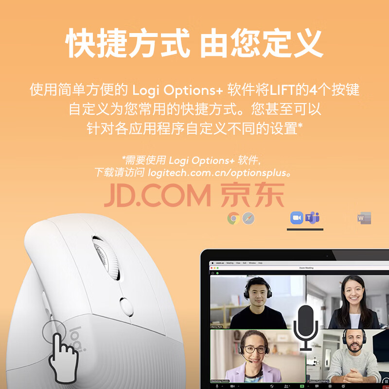 商品相册:罗技(Logitech)Lift人体工学鼠标 垂直鼠标 小手鼠标 无线蓝牙鼠标 3台设备秒切换 带Logi Bolt接收器 粉色第