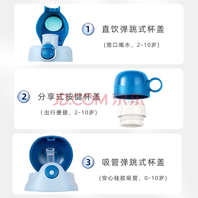 商品相册:FGA富光儿童保温杯316不锈钢带吸管大容量水壶喝水杯饮水杯子三盖第1张/共6