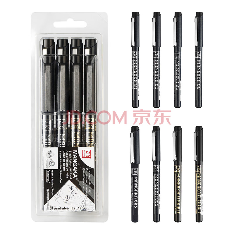商品相册:吴竹(KURETAKE)进口防水防酒精勾线笔签字笔绘图水笔漫画黑色针管笔8支套装CNM/8VBK第1张/共5