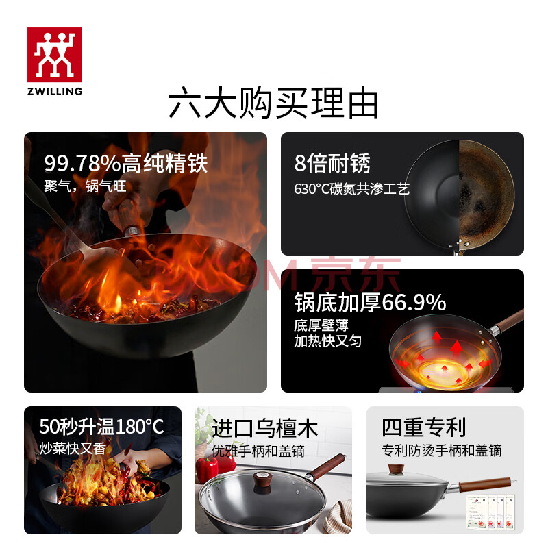 商品相册:双立人(ZWILLING)炒锅铁锅平底无涂层家用炒菜锅燃气电磁炉通用龙铁锅 Dragon30cm第