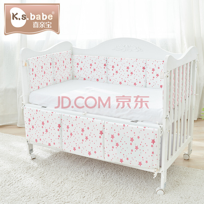 商品相册:喜亲宝新生儿床围婴儿床围宝宝防撞防护栏床围栏120*60cm(可拆内胆)粉第