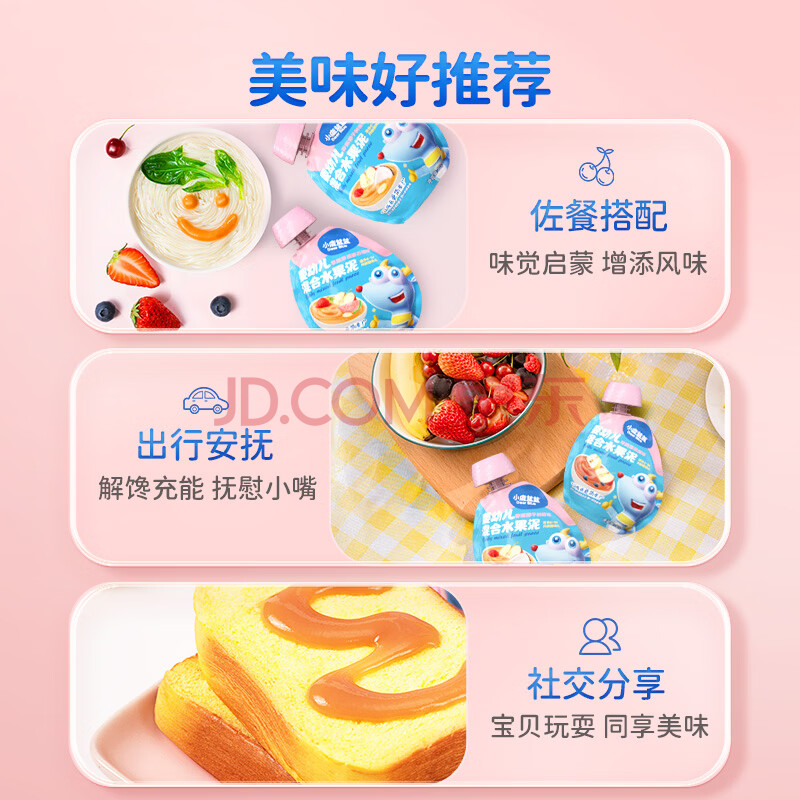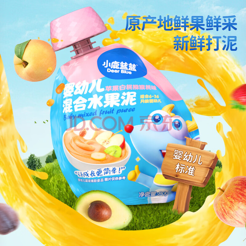 商品相册:小鹿蓝蓝 婴标果泥婴幼儿果泥8包640g宝宝新鲜水果泥8种口味婴儿辅食第1张/共6