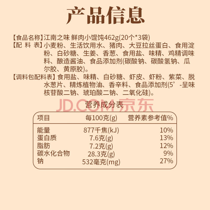商品相册:江南之味 鲜肉小馄饨462g(20个*3袋) 小云吞早餐宵夜点心第
