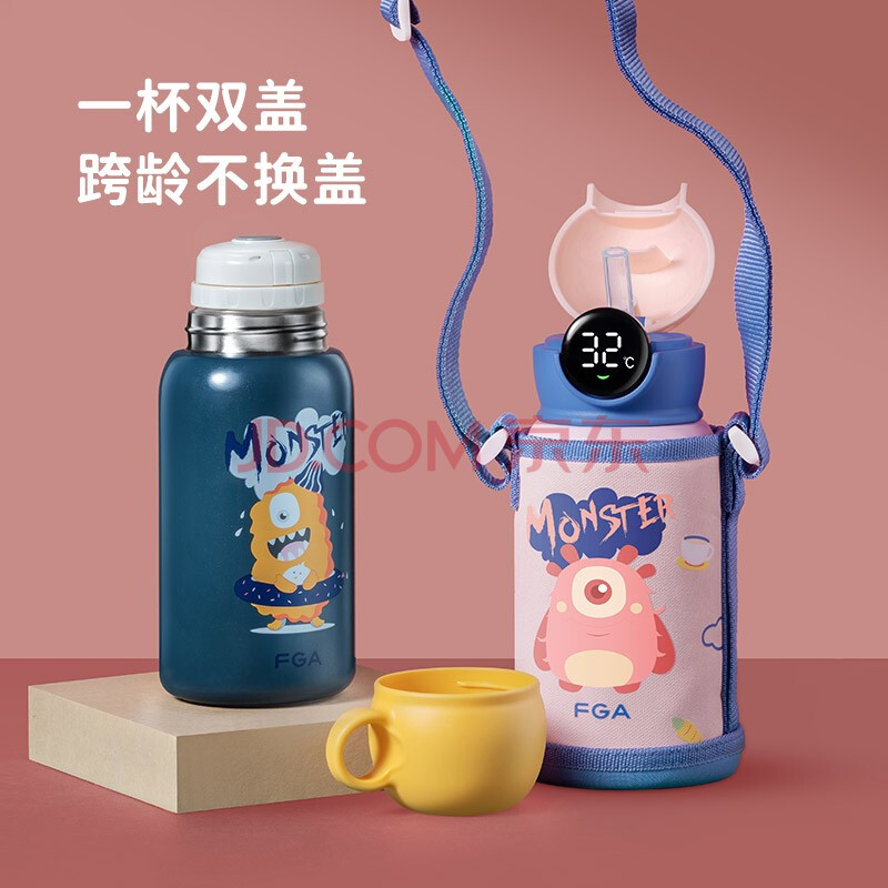 商品相册:FGA富光儿童保温杯316不锈钢智能数显学生吸管大容量水杯壶双盖杯子第