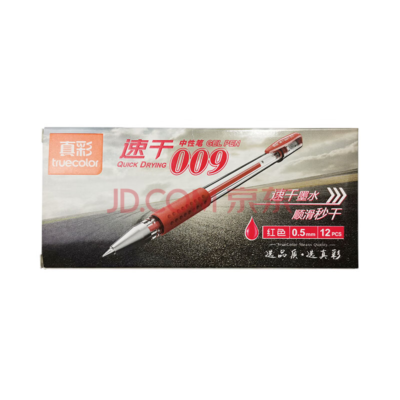 商品相册:真彩(TRUECOLOR)速干009红色中性笔0.5mm经典办公子弹头拔帽商务会议记录水笔学生考试纠错笔红笔热门商品 12支/盒第