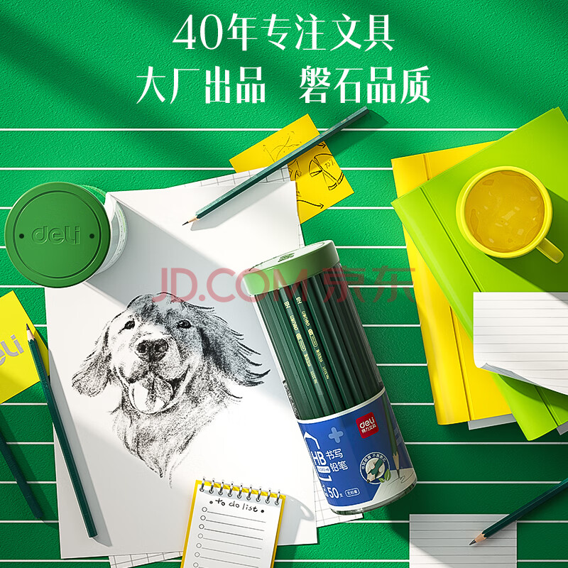商品相册:得力(deli)50支HB绿杆铅笔六角杆学生绘图铅笔书写铅笔33413-HB学生开学文具第