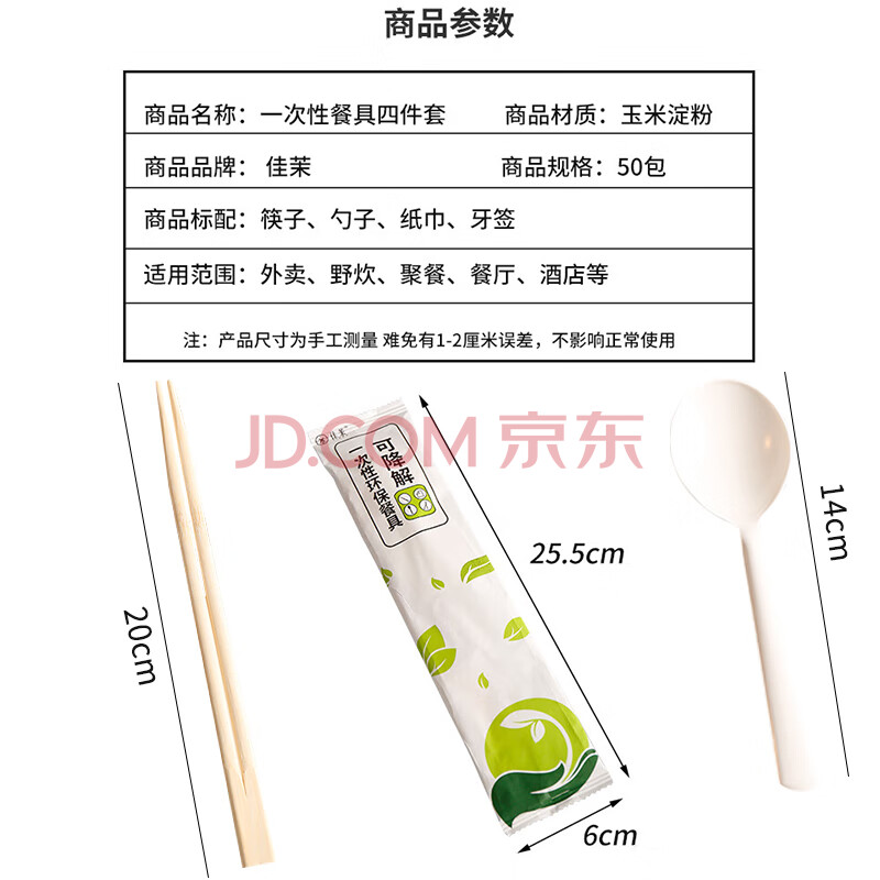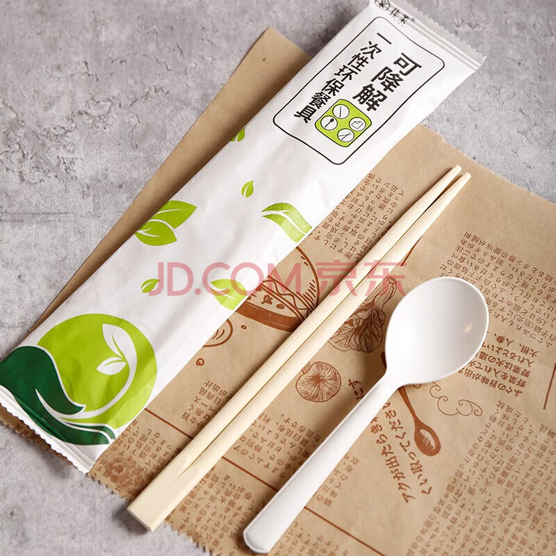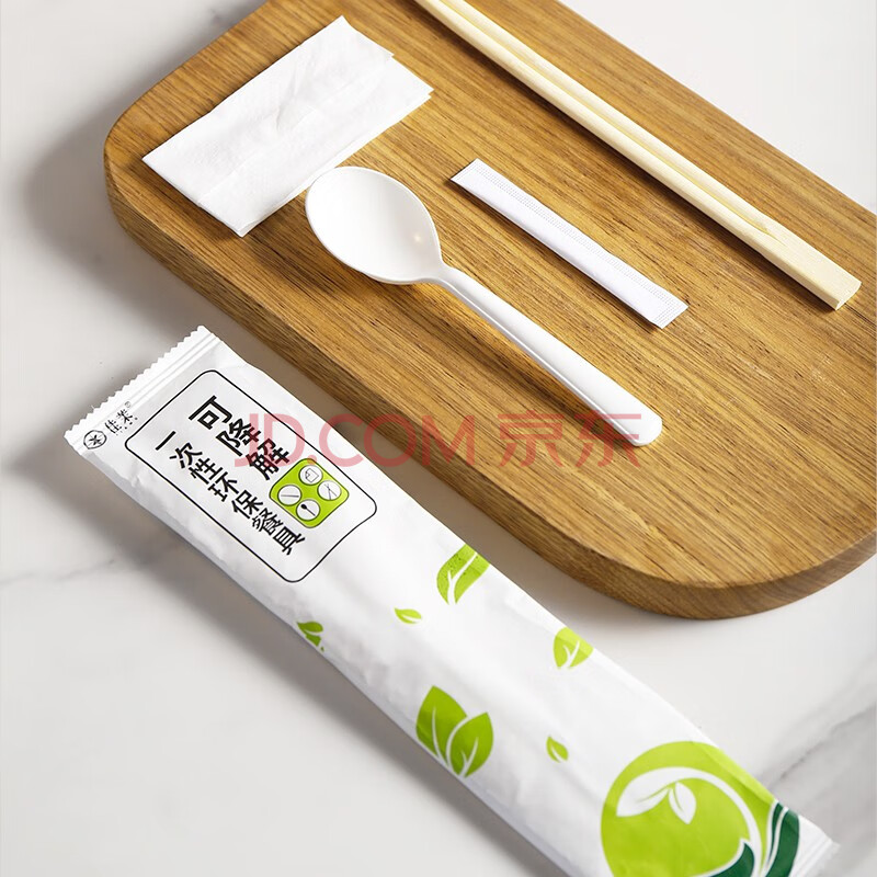 商品相册:佳茉一次性筷子四件套50包可降解酒店外卖筷子和勺子牙签四合一餐具第