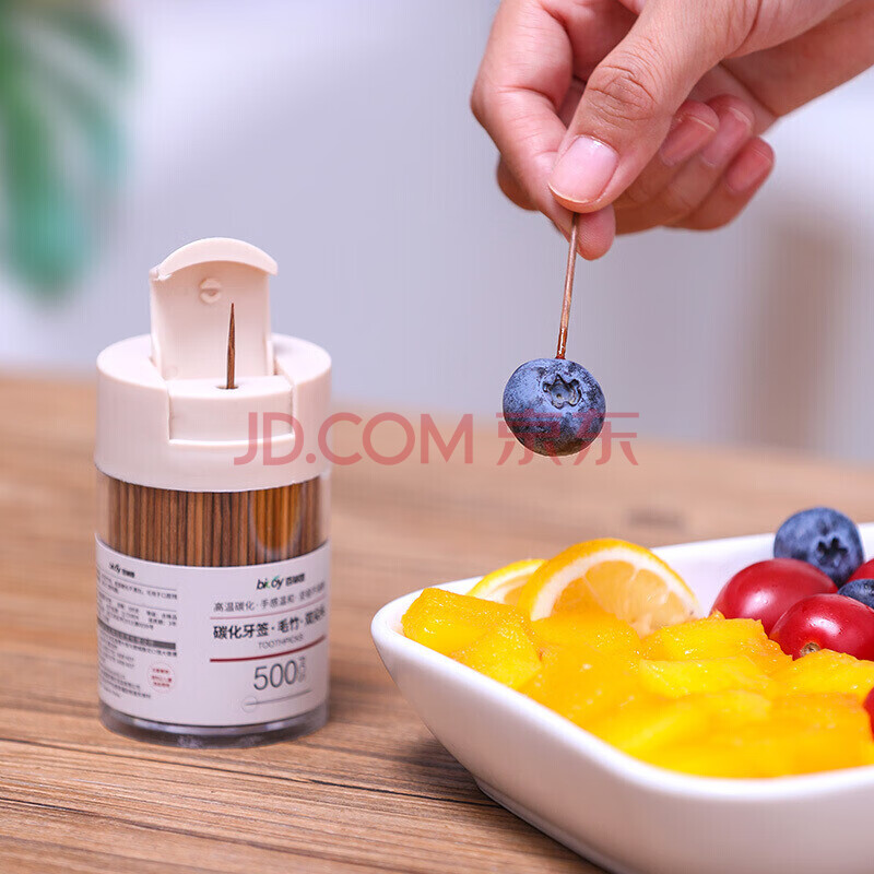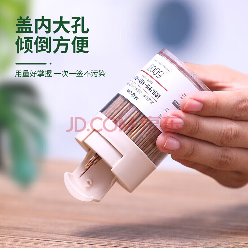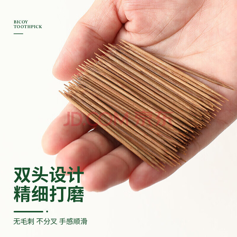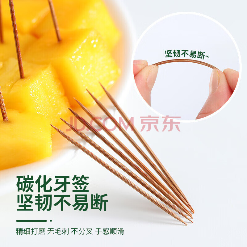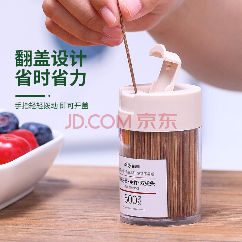 商品相册:百草园翻盖碳化一次性牙签竹签水果签家用双头剔牙工具桶装1000支2盒装第