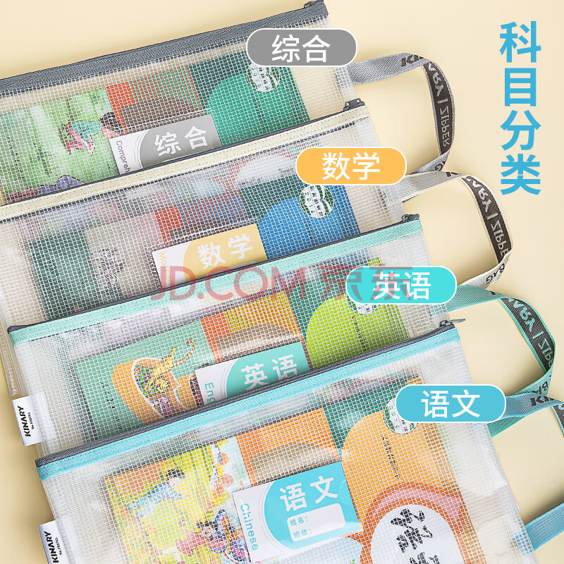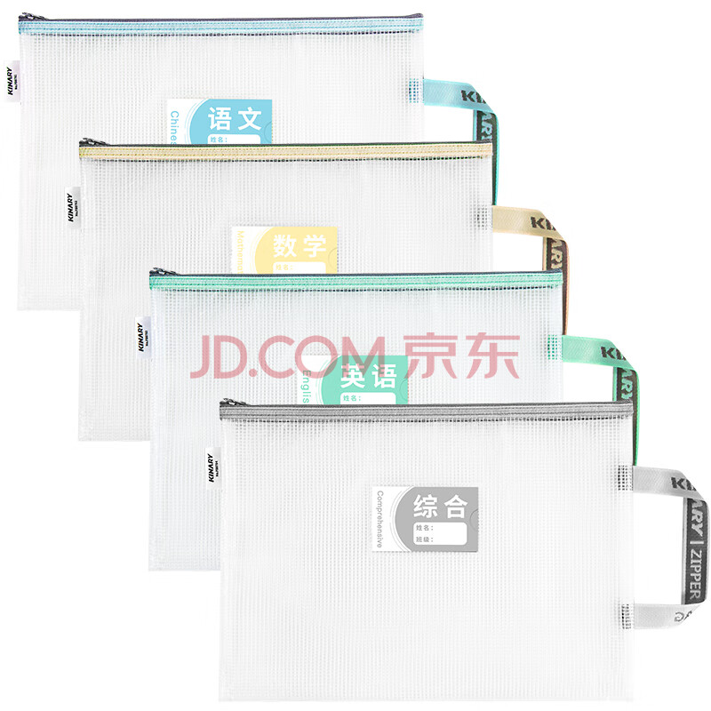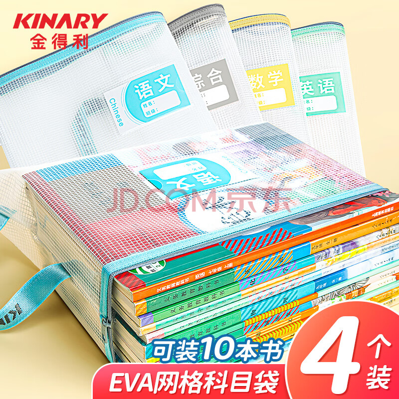 商品相册:金得利4个A4透明文件袋小学初中生分科目分类袋科目袋拉链书本作业试卷收纳袋手提袋文具补习袋FB8760-4第